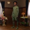 87% recycled polyester, 13% elastane plain weave